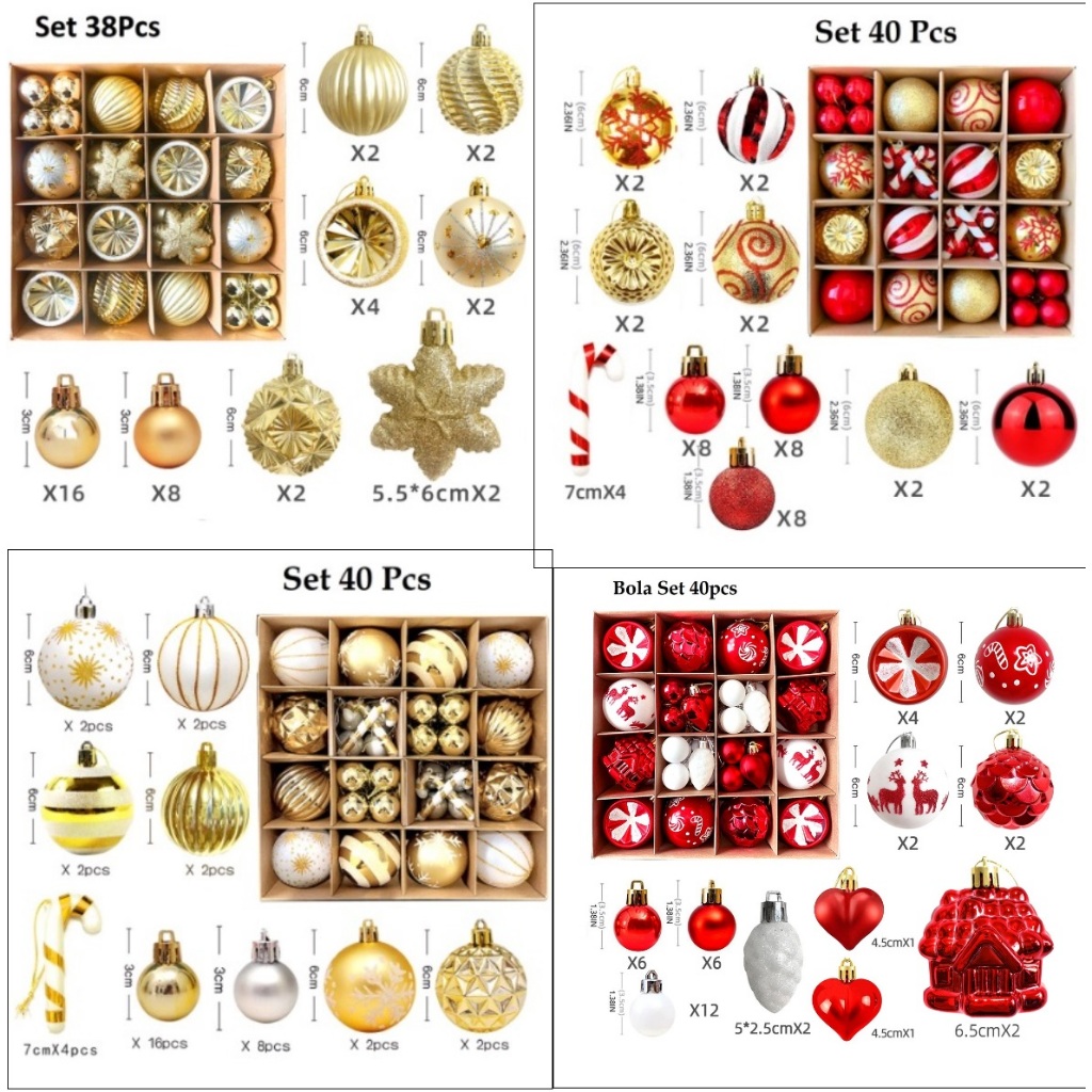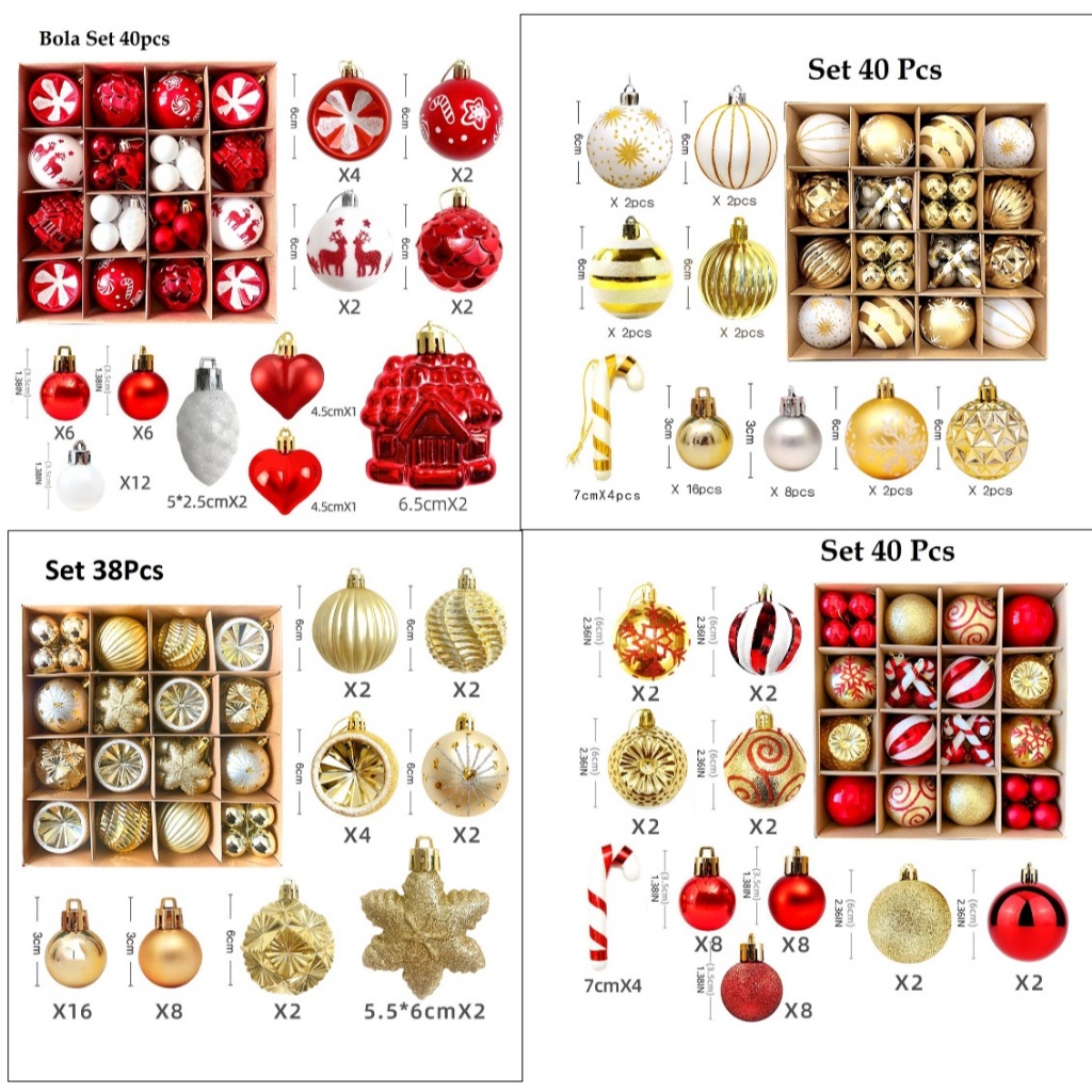 Bola Natal Mix Size Aksesoris Candy Star Christmas Balls Ornamen Terbaru Hiasan Dekorasi Xmas Gantungan Pohon Natal Salj