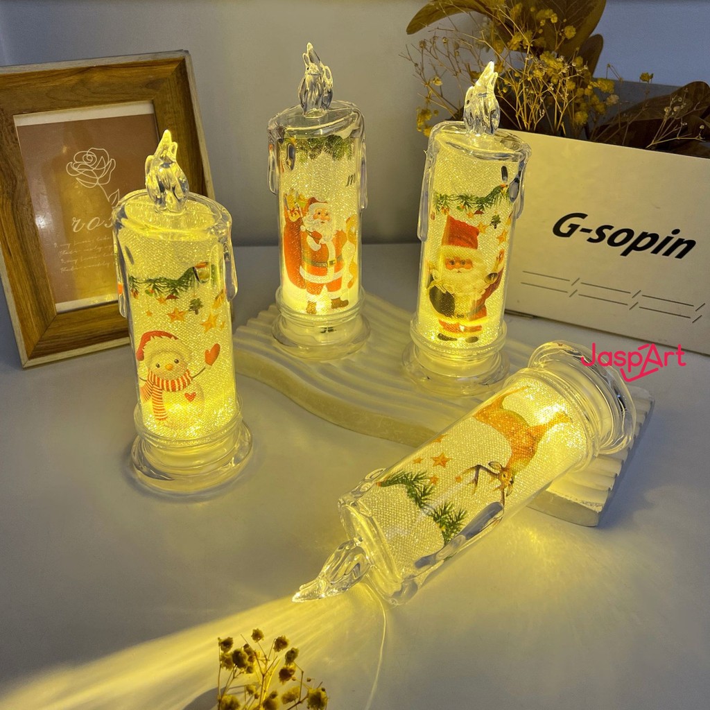 Lampu Natal LED Akrilik Lilin LED Elektrik Lilin Hiasan Natal Lucu Lampu santa snowman Tinggi 18cm