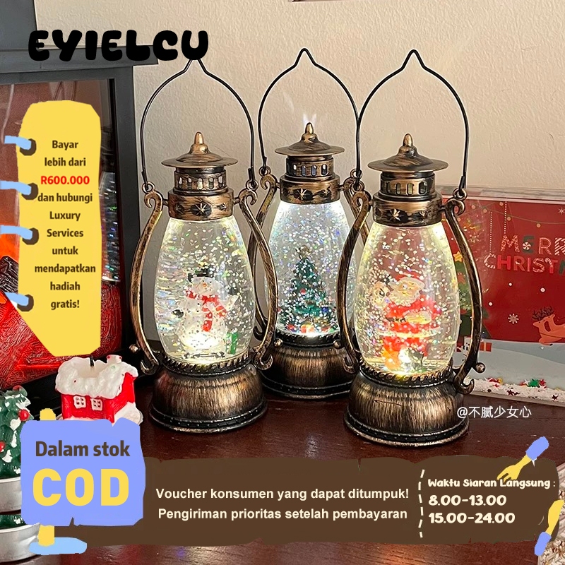 Eyre Baterai Bonus Lampu Hias Natal LED dengan Efek Salju Karakter Lentera Gantung Lilin Dekorasi Meja Bola Salju Lamp