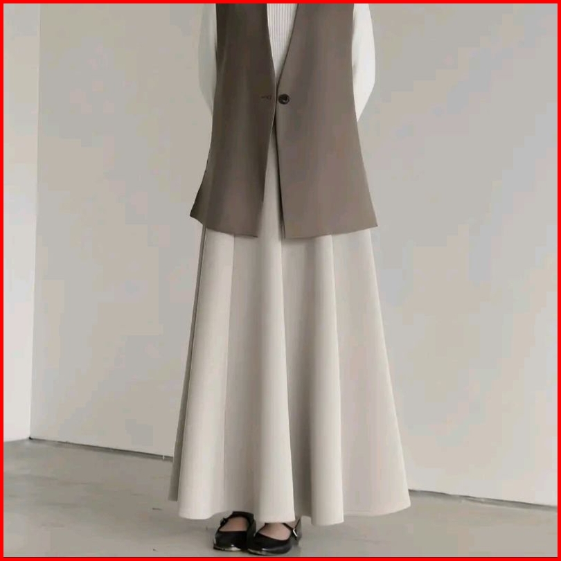 Audy Skirt - Korean Loose Maxi Skirt Rok Wanita Anti Kusut Polyester - Rok Flare Wanita - Rok Basic Polos - Maxi Rok Pan
