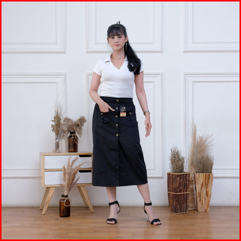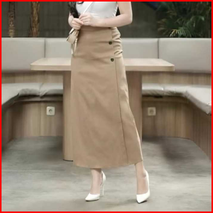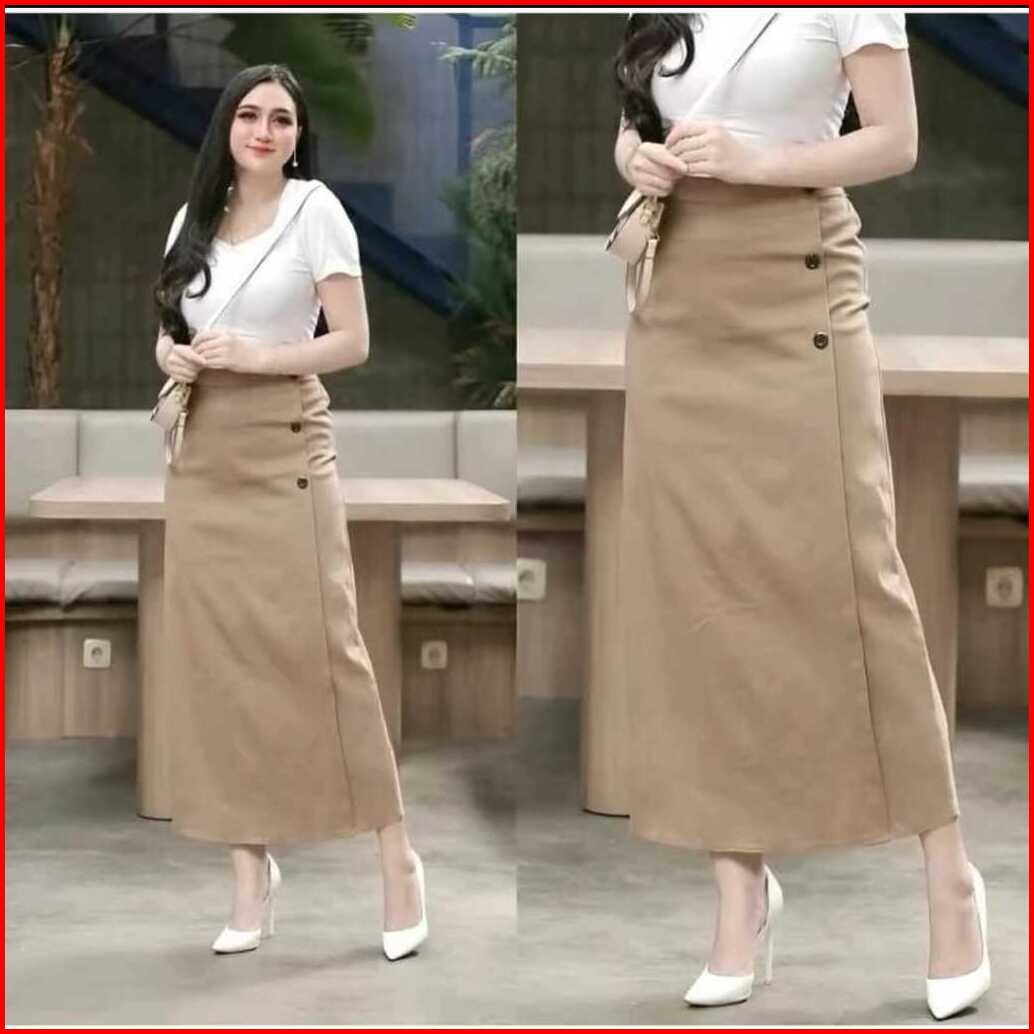 Luna Skirt Rok Panjang Twill Combed Strech Wanita Semi A-line Karet Standar