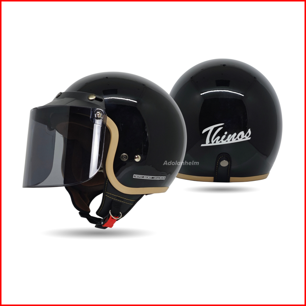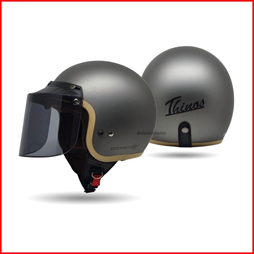 Helm Bogo Dewasa Retro Thinos New Reborn List Coklat Full Leher Sni Flat Visor - Motorcycle