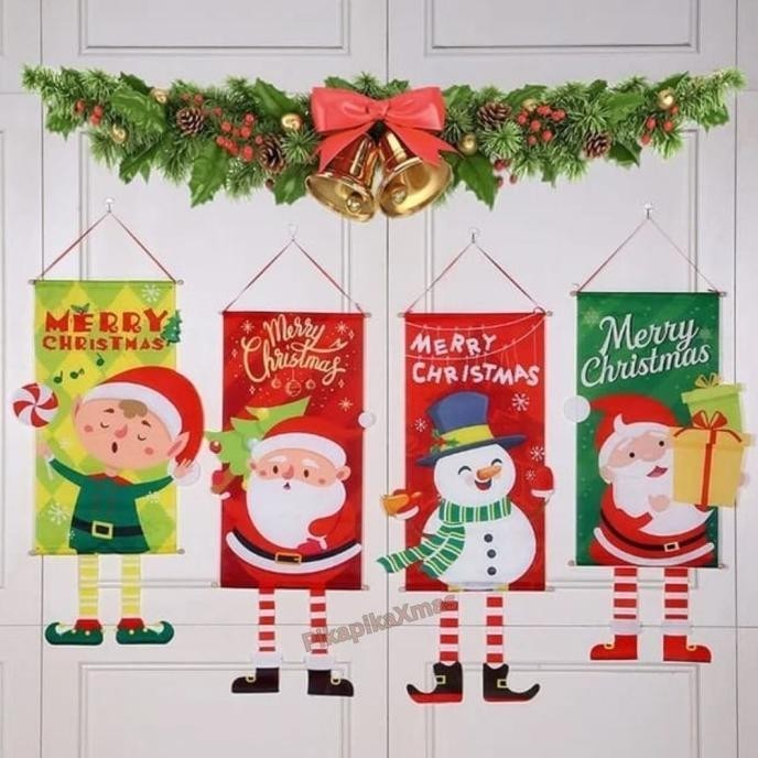 Banner Natal Banner christmas Gantungan Banner Dekorasi Depan Pintu Natal Kain Motif Natal Christmas Memajang Kebawah Po
