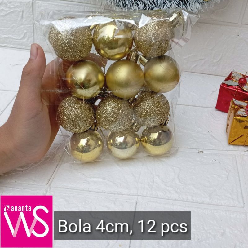 Bola Natal 4Cm Hiasan Pohon Natal Isi 12 pcs