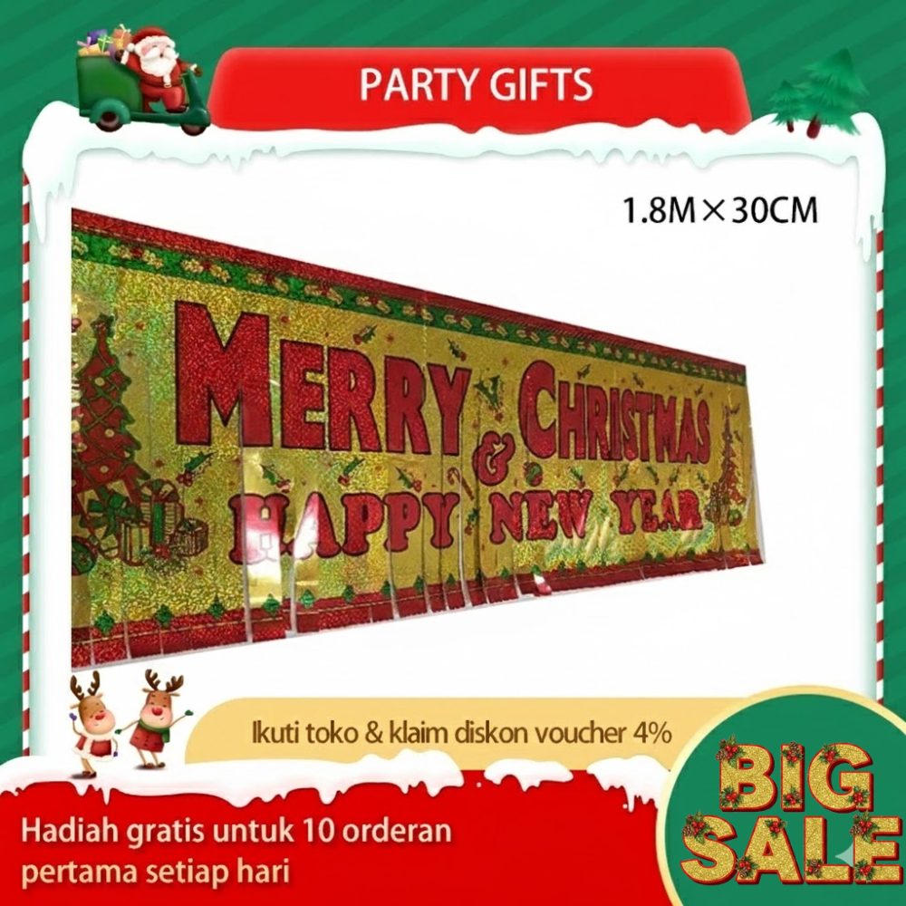 Banner Garland Hiasan Rumbai Natal Merry Christmas Happy New Year
