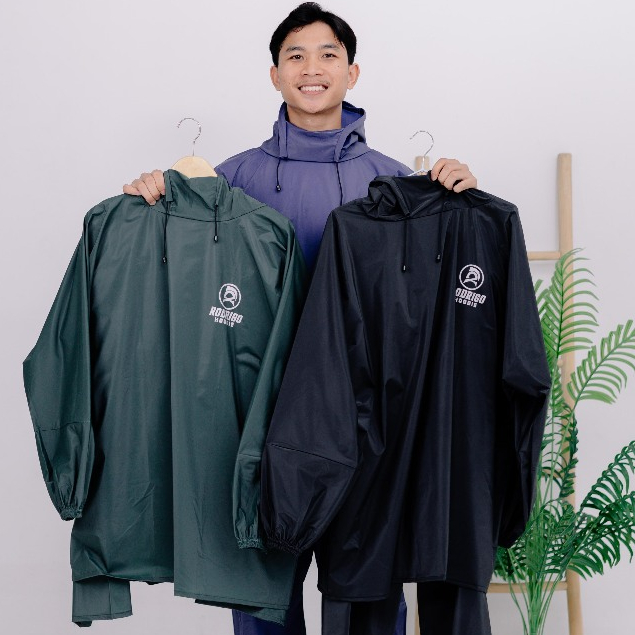 Jas Hujan Hoodie Tanpa Resleting Pria Wanita D3W4SA RODRIGO Bahan Tebal PVC