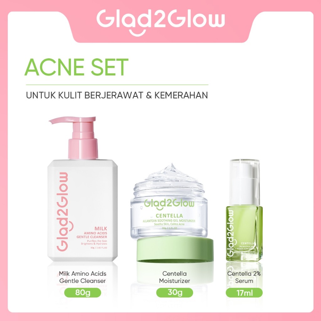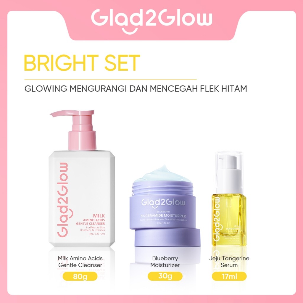 [PAKET ISI 3] Glad2Glow Moisturizer Serum Face Wash GLOWING KIT Dark Spot ACNE KIT