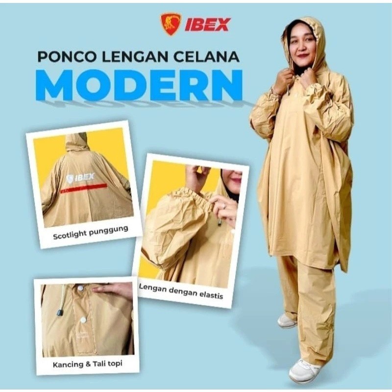 Jas Hujan Ponco Lengan Celana MODERN Ibex Poncho Mantel setelan celana D3W4SA pria dan wanita