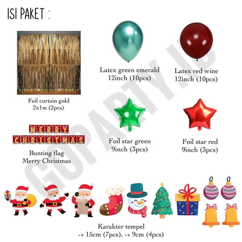 Paket Dekorasi Natal CHRISTMAS Hiasan Dinding Bunting Flag Banner Holiday Santa