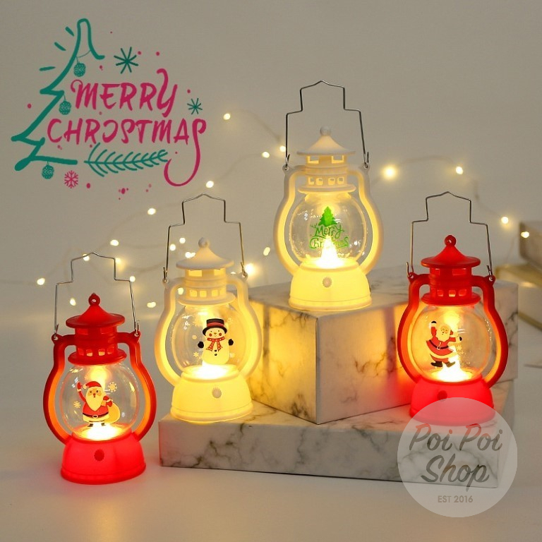 Lampu Lentera Natal Christmas LED Desain Merah Putih Santa Claus Merry Christmas Untuk Dekorasi Natal Kualitas Terbaik S