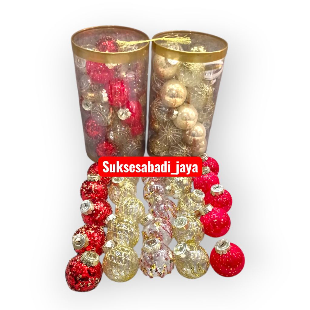PREMIUM Bola Natal 6CM isi 25pcs Box Tabung BOLA NATAL Transparan Mix Motif CHRISTMAS BALL PREMIUM 6CM Hiasan Natal Aks