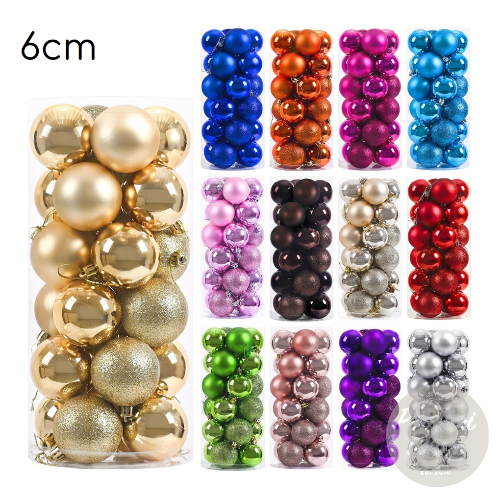 Hiasan Bola Pohon Natal 6cm isi 24 Bulat BGantungan Dekorasi Ornamen Dekorasi Merry Christmas Tree Dekorasi Kualitas Tin