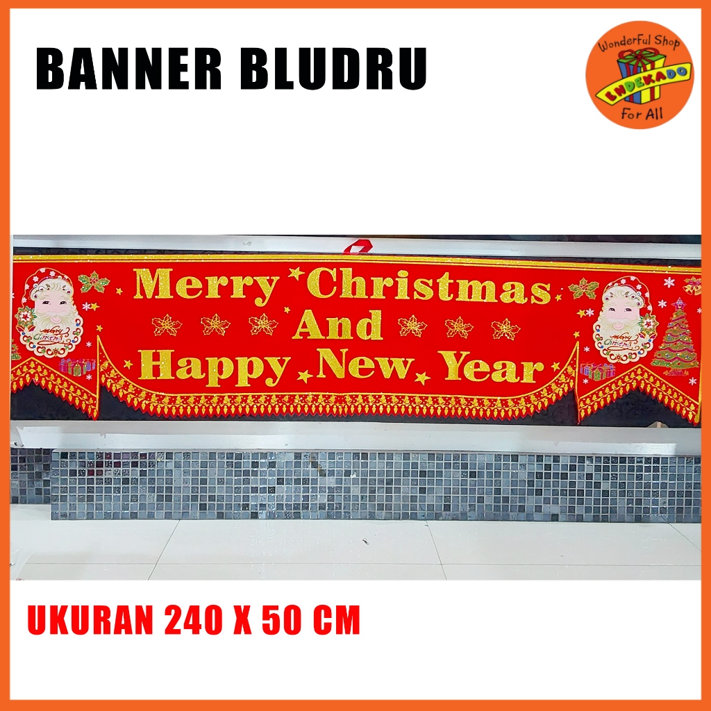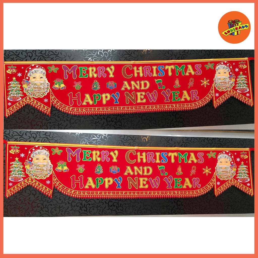 Banner Merry Christmas and Happy New Year Bludru Hiasan Natal