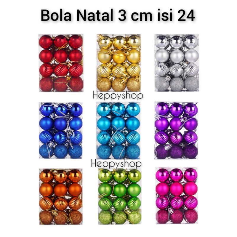 Bola Natal 3 cm isi 24 Aksesoris Pohon Natal Gantungan