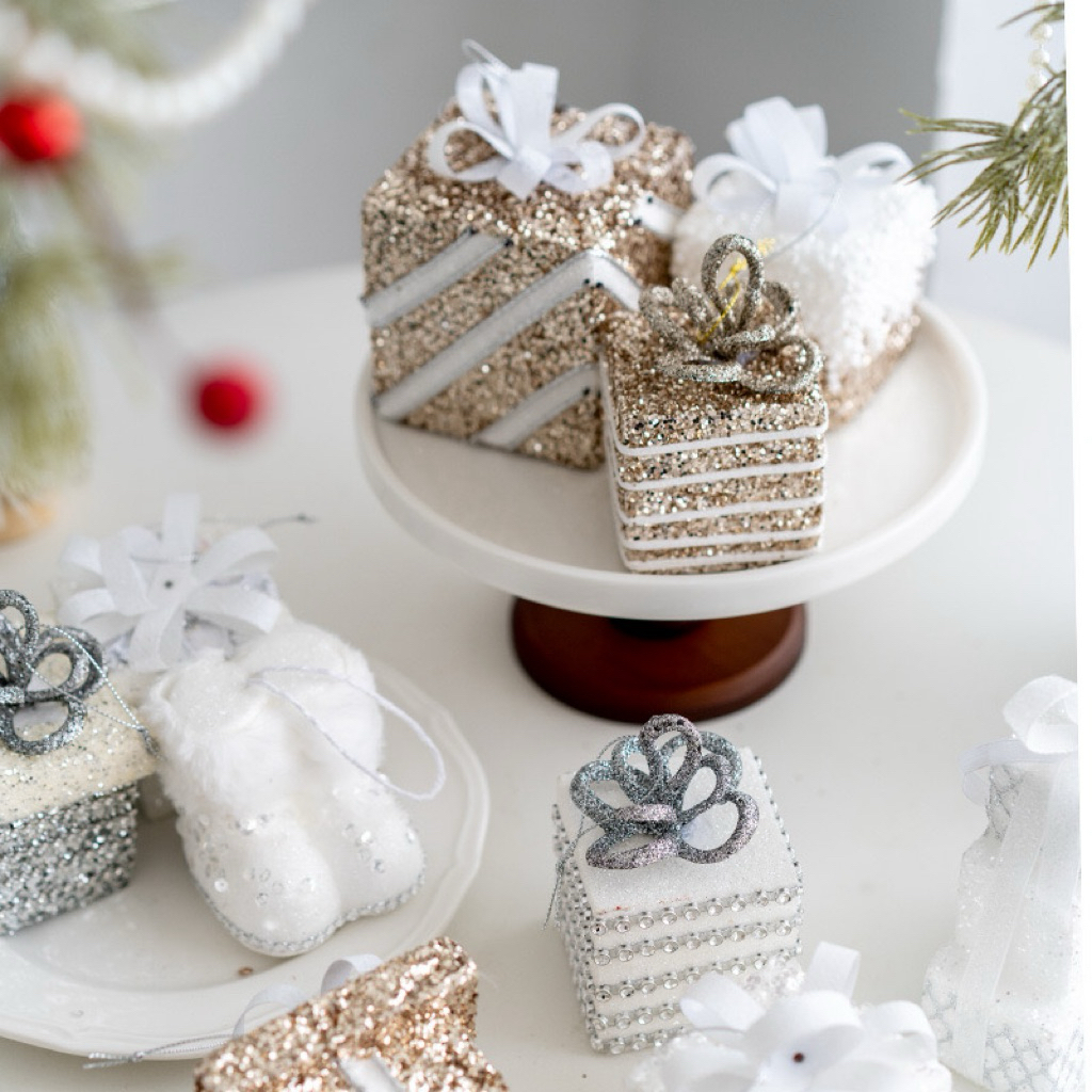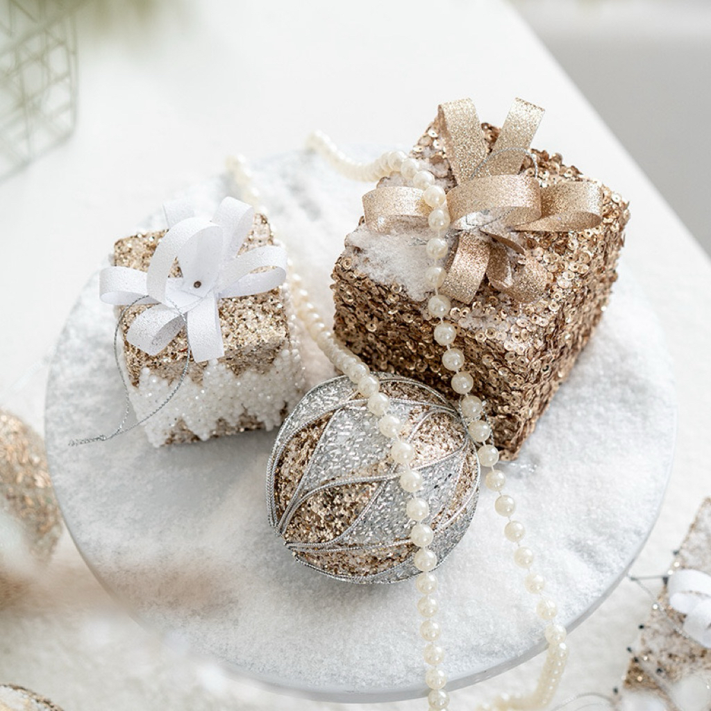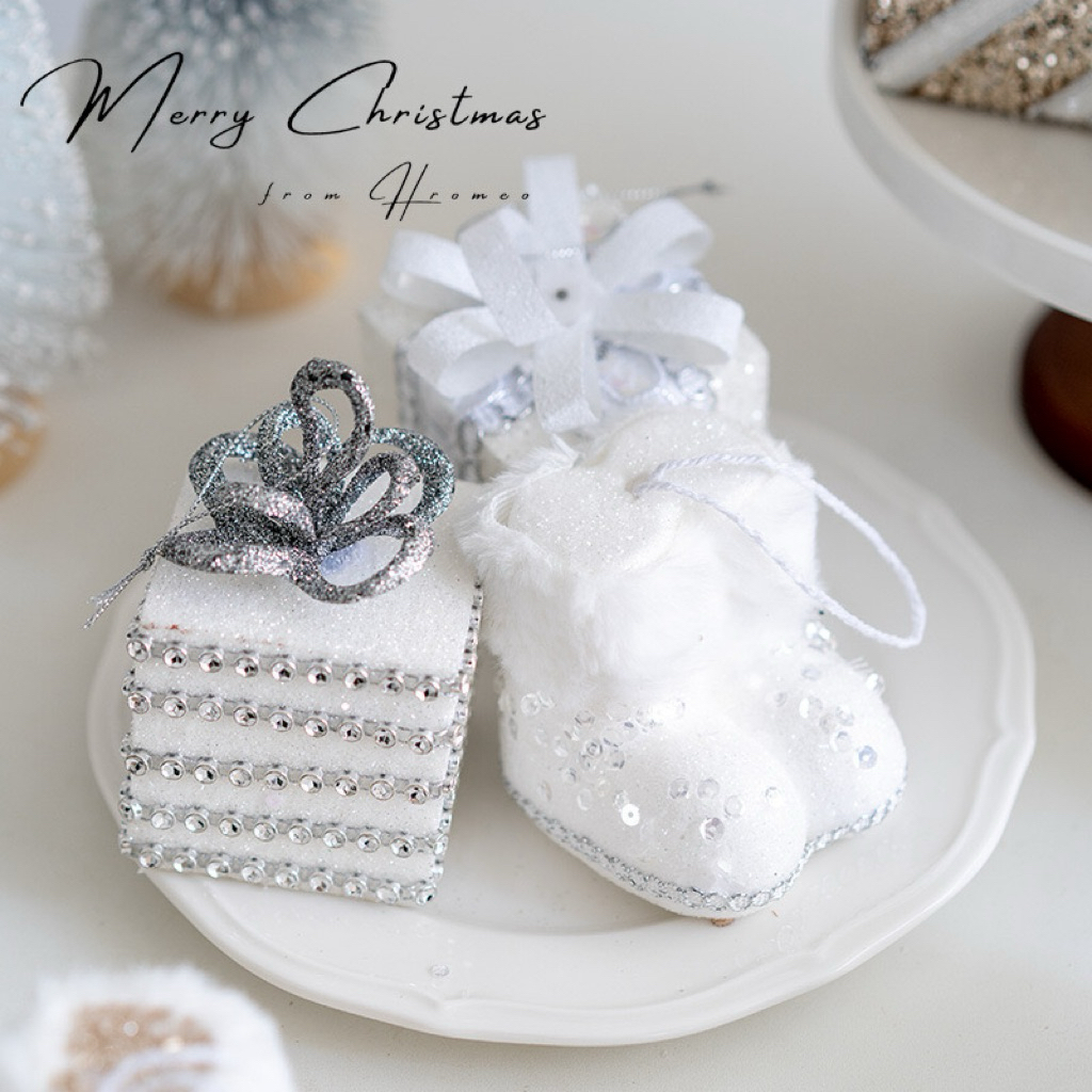Hiasan Gantungan Dekorasi Pohon Natal Premium Bola Kado Tongkat Single Ornament Christmas Glitter