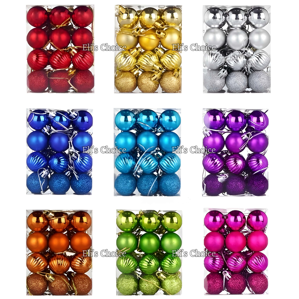 Bola Natal TERLENGKAP WARNA WARNI 3cm 4cm 5cm 6cm Glitter Doff Glossy GROSIR Dekorasi Pohon Natal