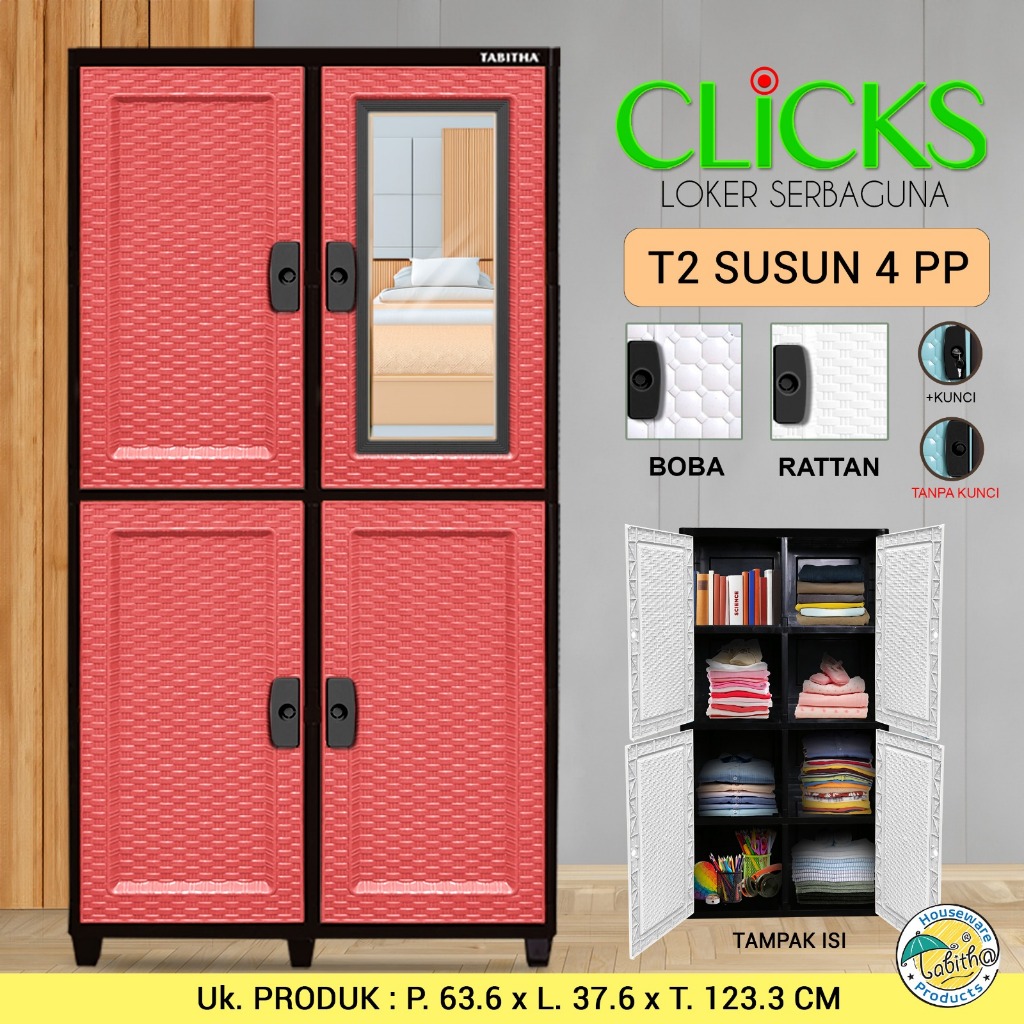 Lemari Pakaian Jumbo Thabitha T2S4 tipe Rotan Kaca Kunci ()