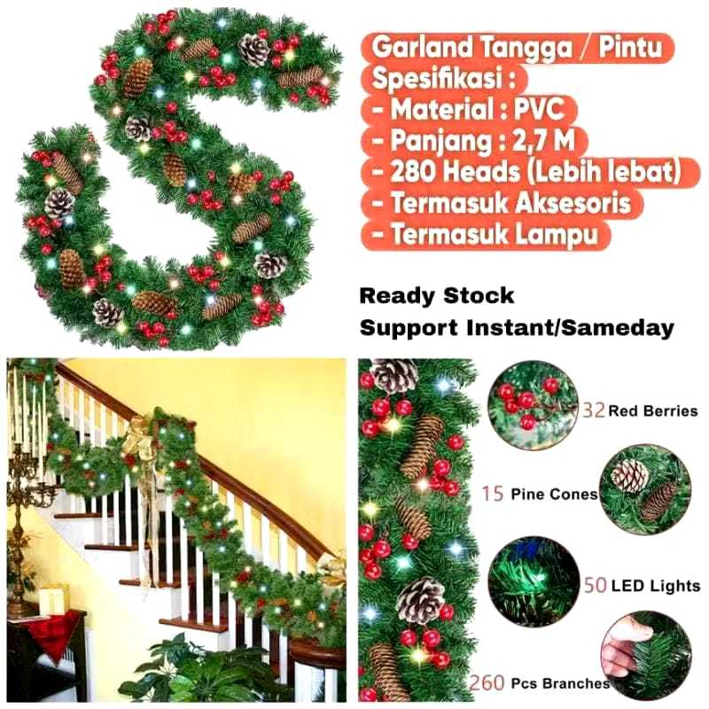 Termasuk lampu dan aksesoris 280 cabang 2 7M garland Dekorasi Natal Gereja Garland Natal Tebal Dengan Lampu Natal Terbar