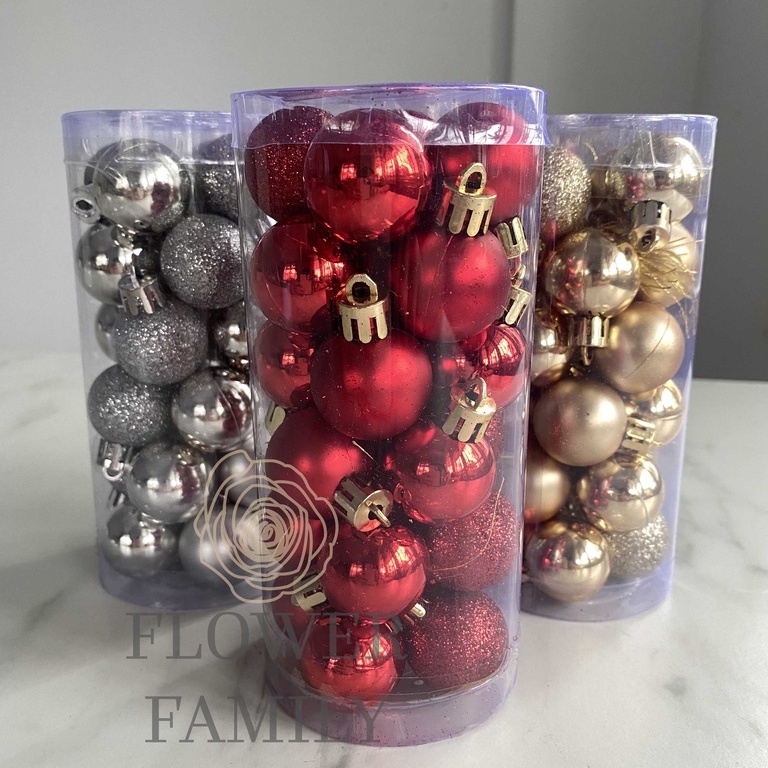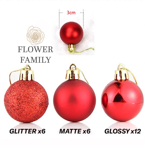 Flower Family 3 CMOrnamen Hiasan Bola Pohon Natal 24 PCSGantungan Hiasan Aksesoris Ornamen Pohon Natal Termurah Bola O