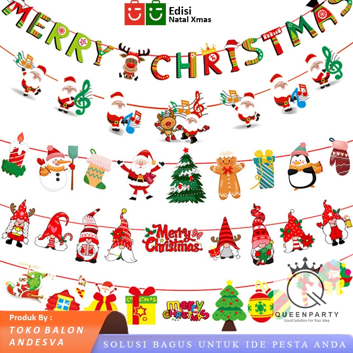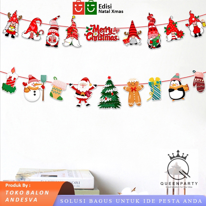 Bunting Flag Natal Banner Ornamen Natal Banner ornamen Pohon Natal banner natal