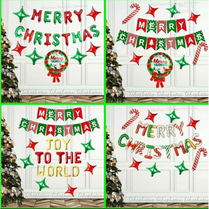 Paket Balon Dekorasi Merry Christmas Banner Set Balon Natal Joy To The World Balon Bogor