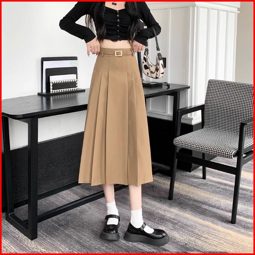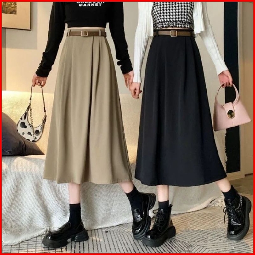 Rok Wanita Midi Korean Style - Joy Skirt Flare Terbaru - Rok Wanita Premium