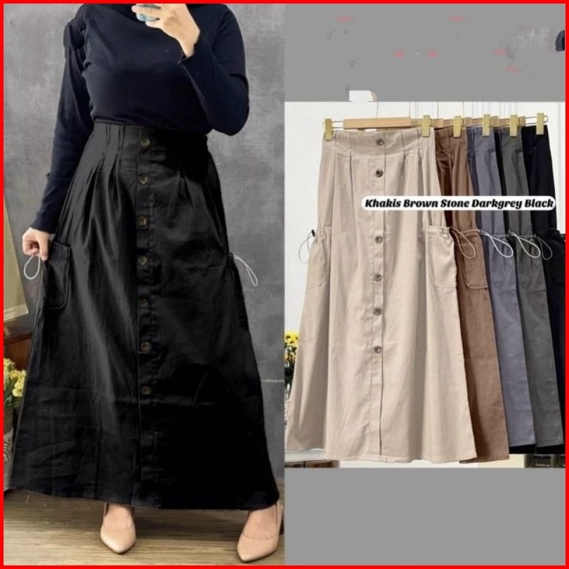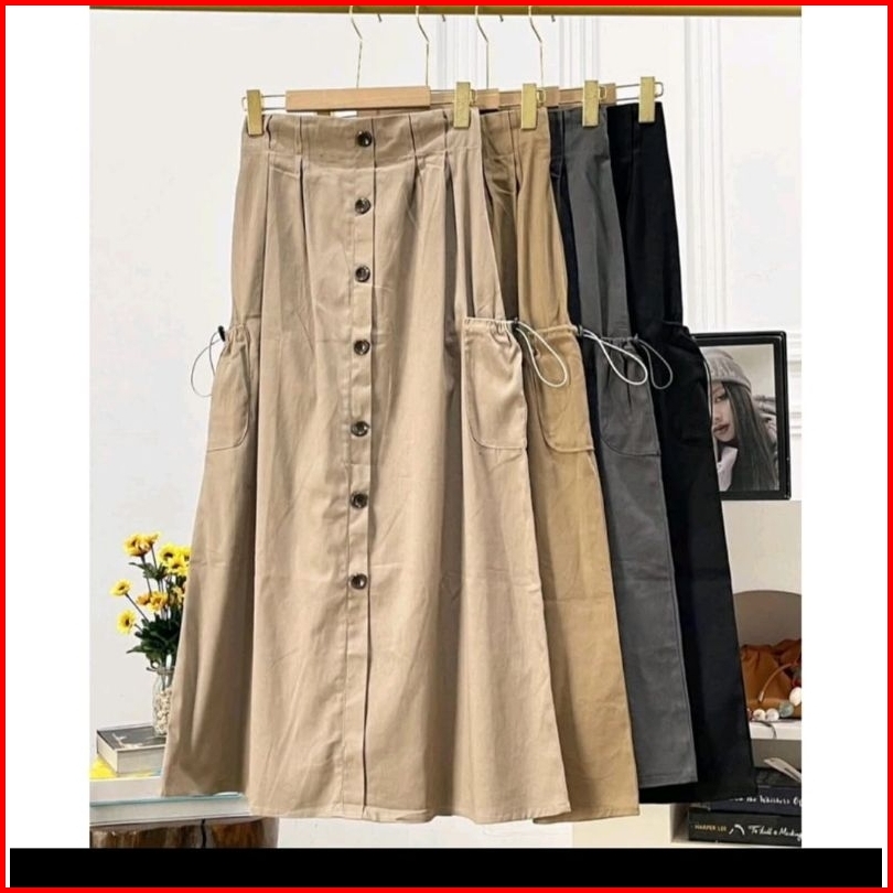 Viny Rok Cargo Wanita Variasi Kancing Depan Full