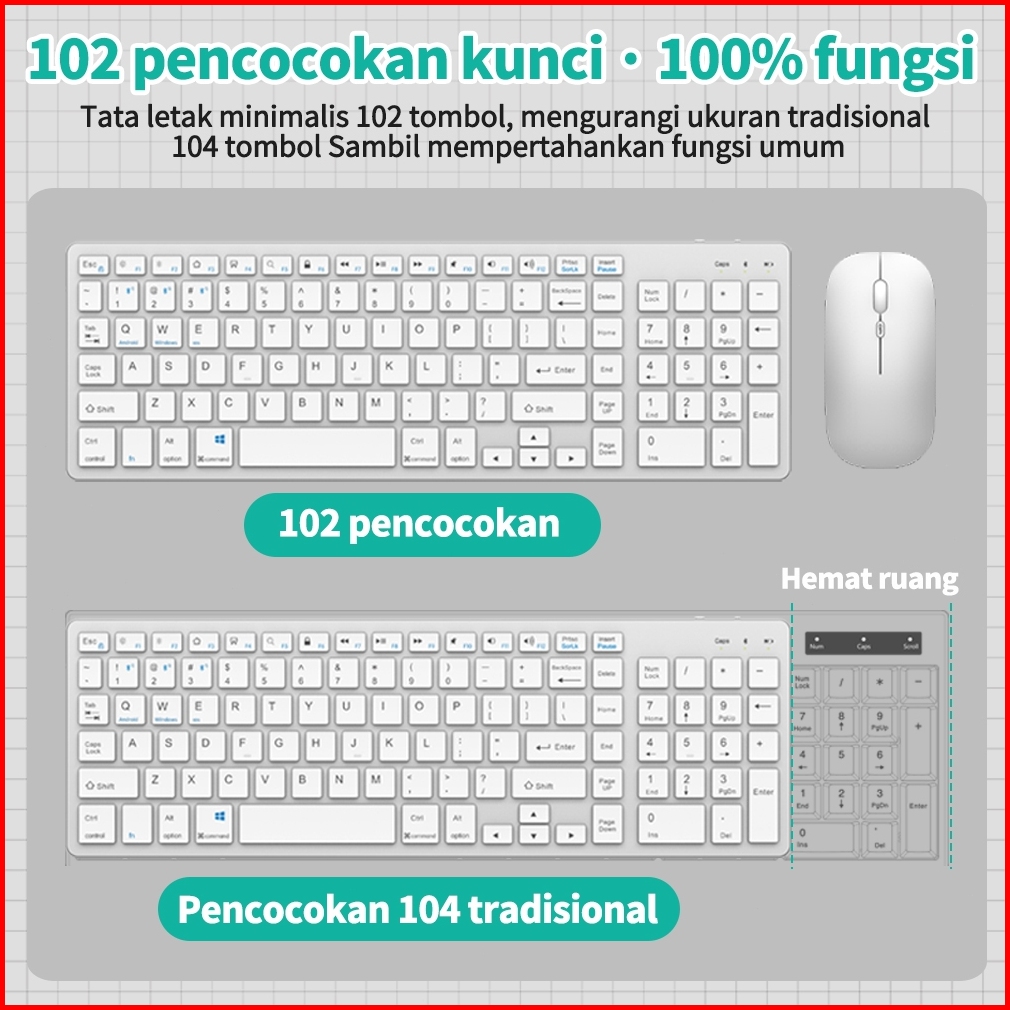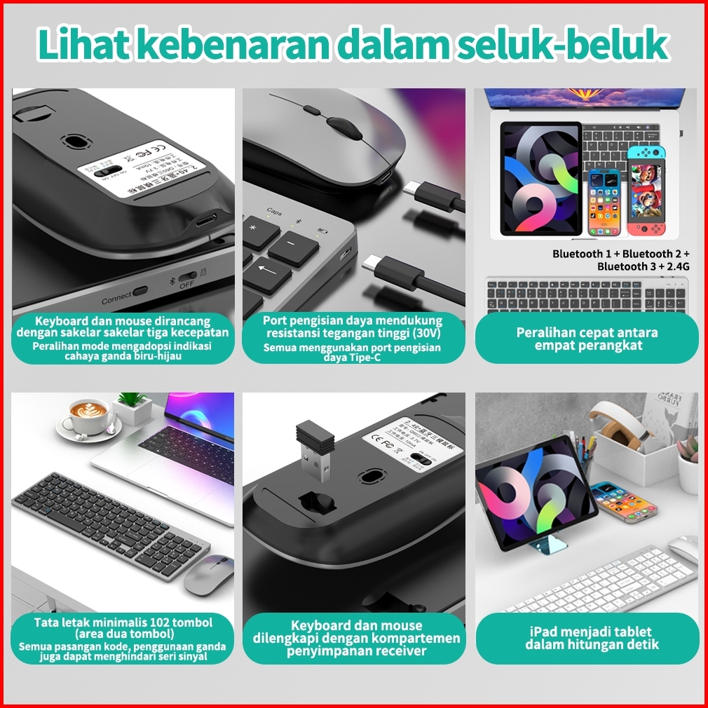 Goojodoq Modus Bluetooth 3 Keyboard 102 Keys Wireless Keyboard Mouse Set For Macbook Laptop Desktop Pc
