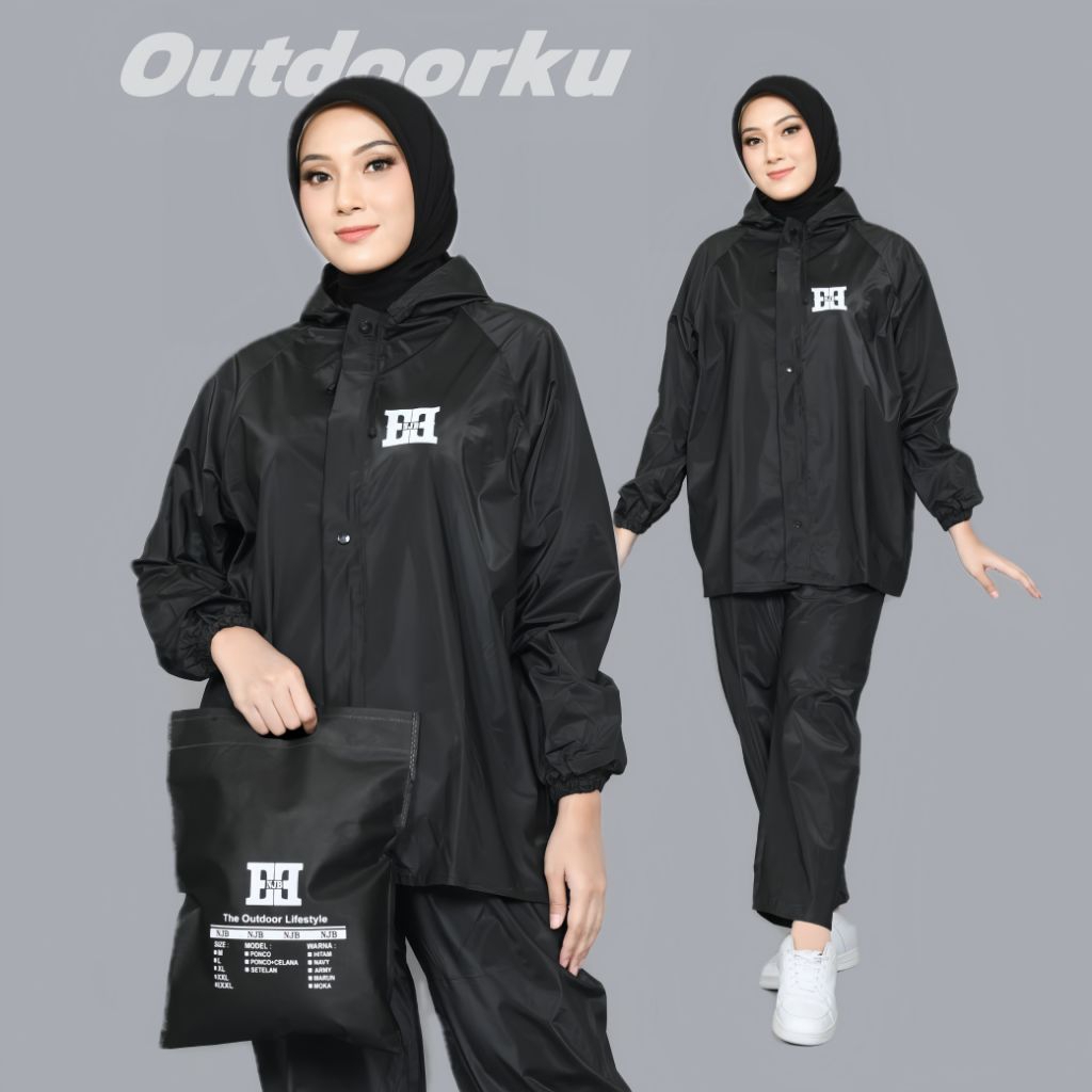 Enjebe_ Jas Hujan Satu Set Jaket Celana Bahan PVC 0,25 | Mantel jumbo | Anti Rembes