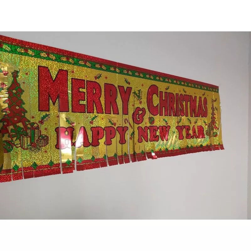 Banner Merry Christmas and Happy New Year Baner Rumbai Tirai Hiasan Dekorasi Selamat Natal