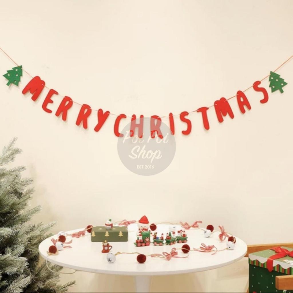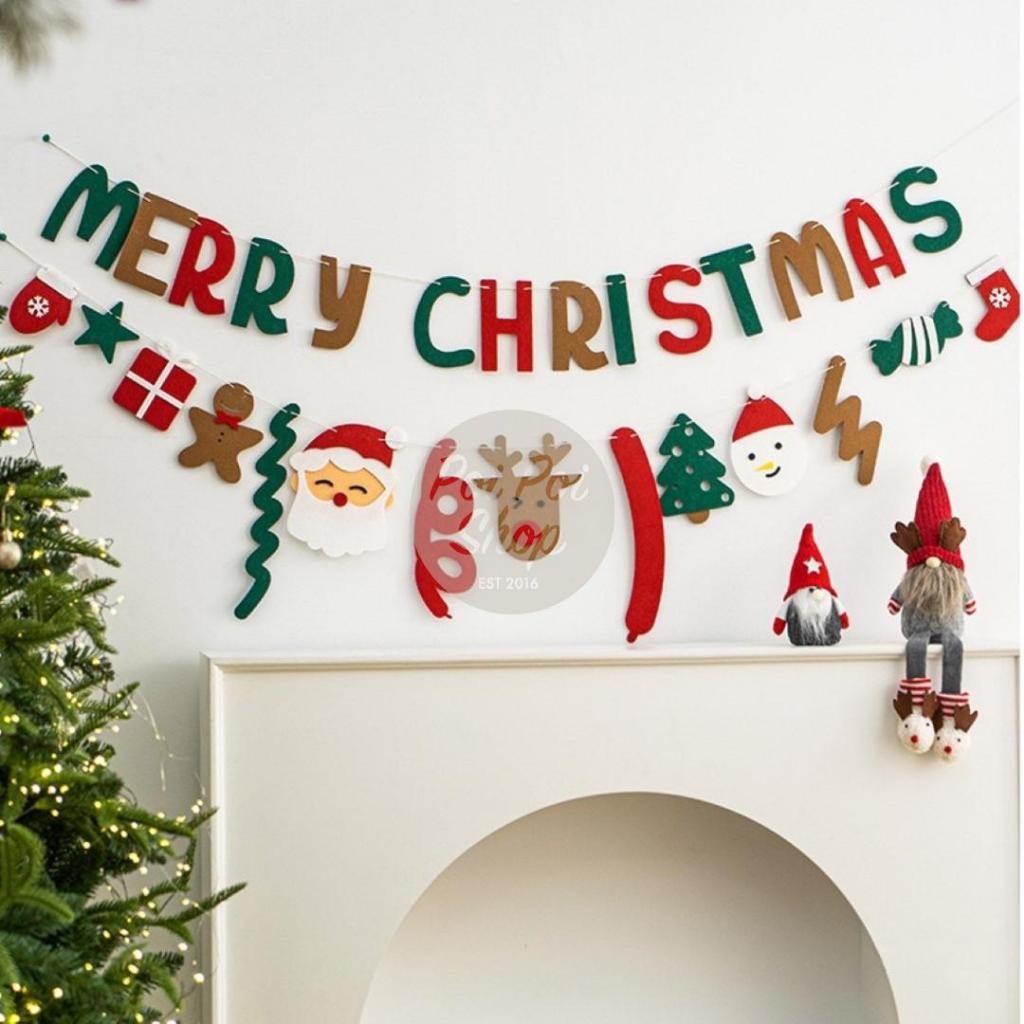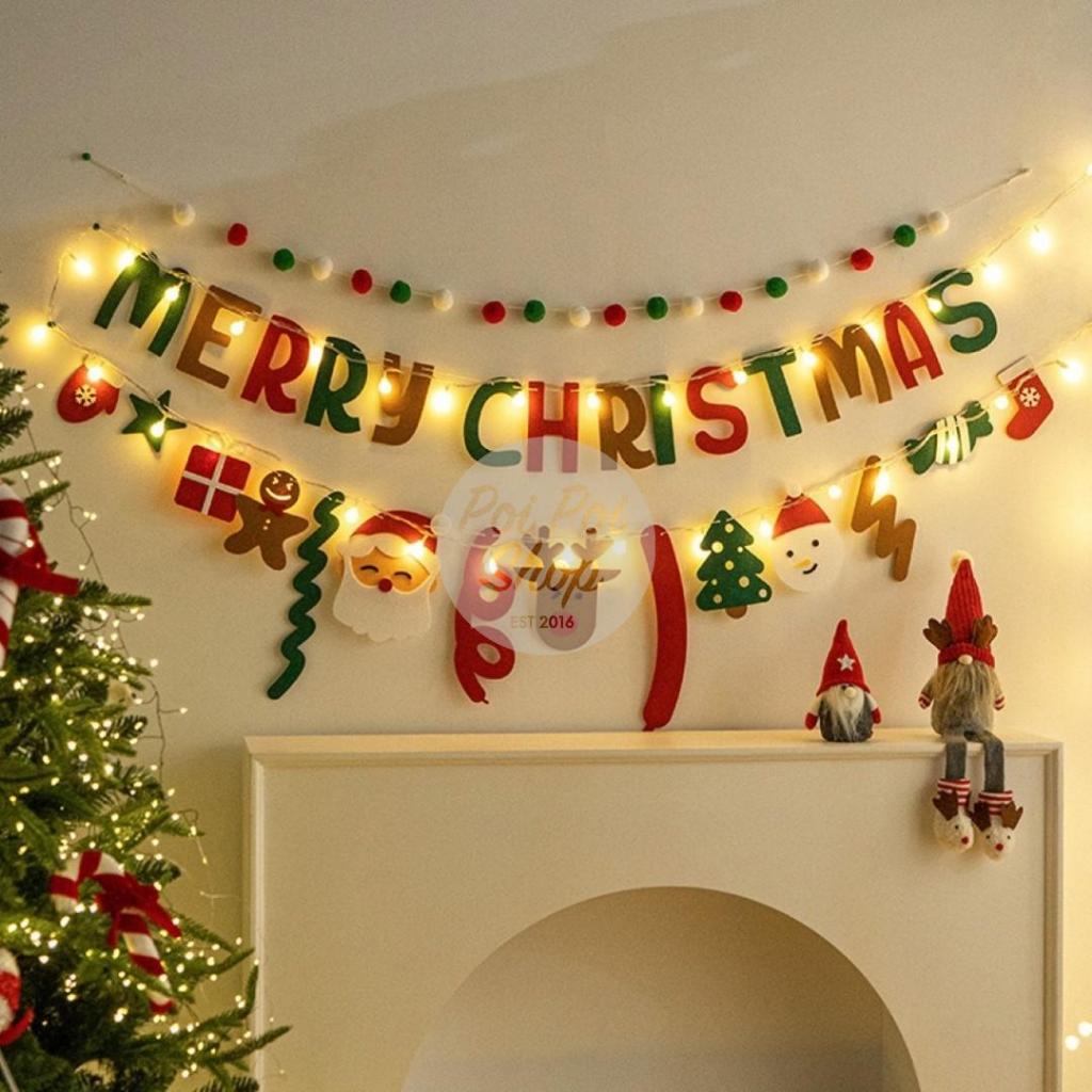 Banner Hiasan Dekorasi Natal Merry Christmas Flanel Garland Hiasan Backdrop Dekor Christmas Flanel Santa Merry Christmas