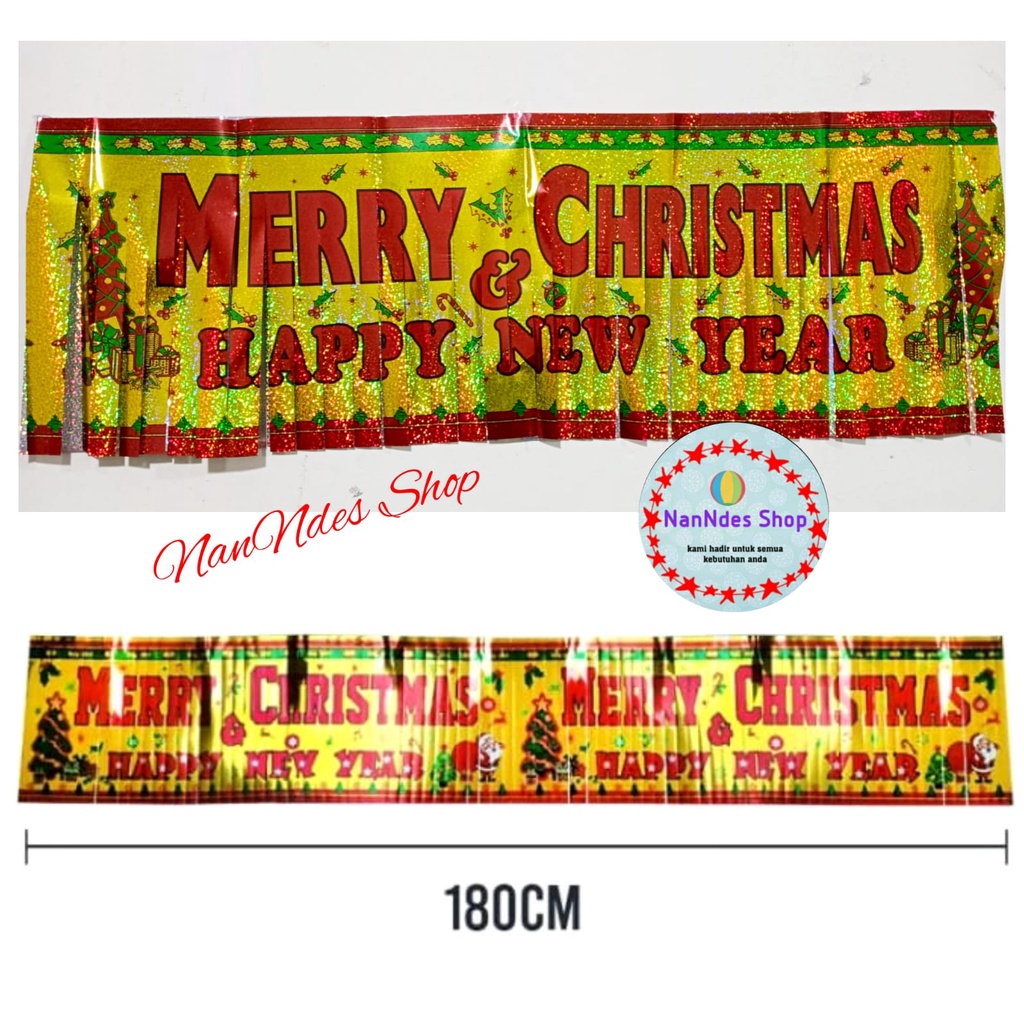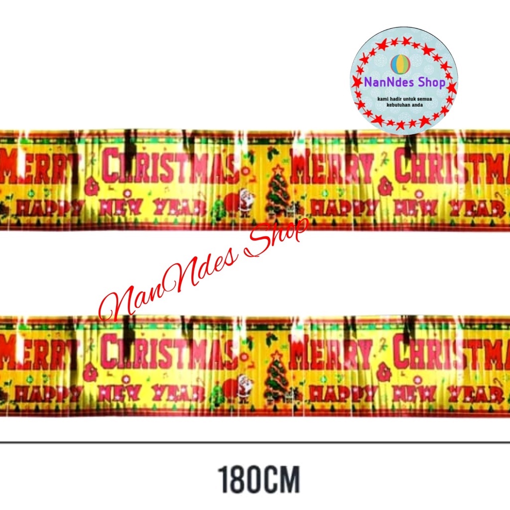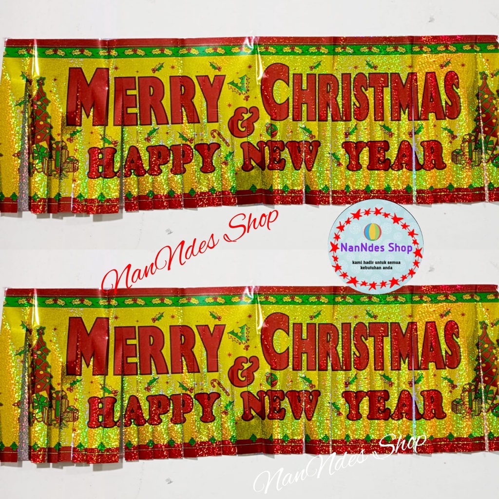 Banner Garland Merry Christmas Happy New Year hiasan dekorasi rumbai natal dan tahun baru banner kuningan mengkilap ucap