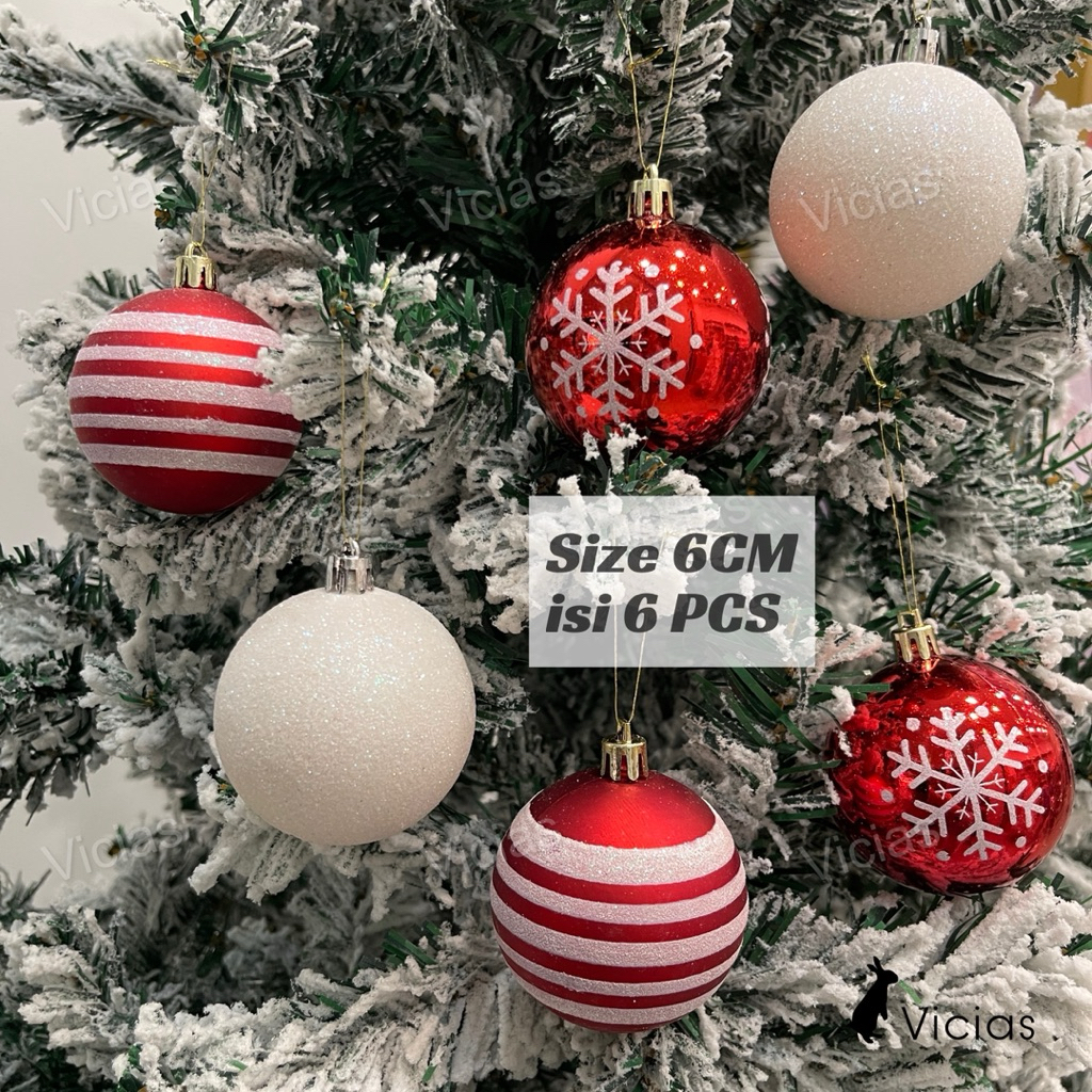 Bola Natal 6CM 6pcs Motif Painting Premium Ornamen Hiasan Pohon Natal 2025 Elegant Mewah