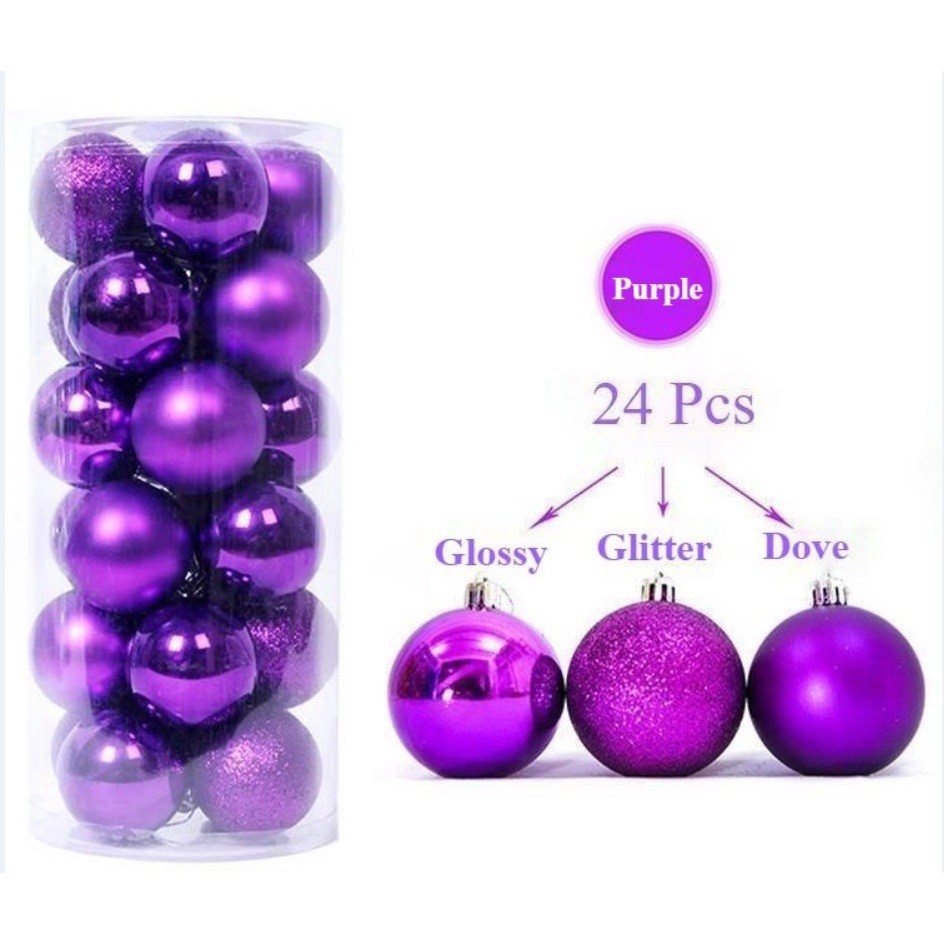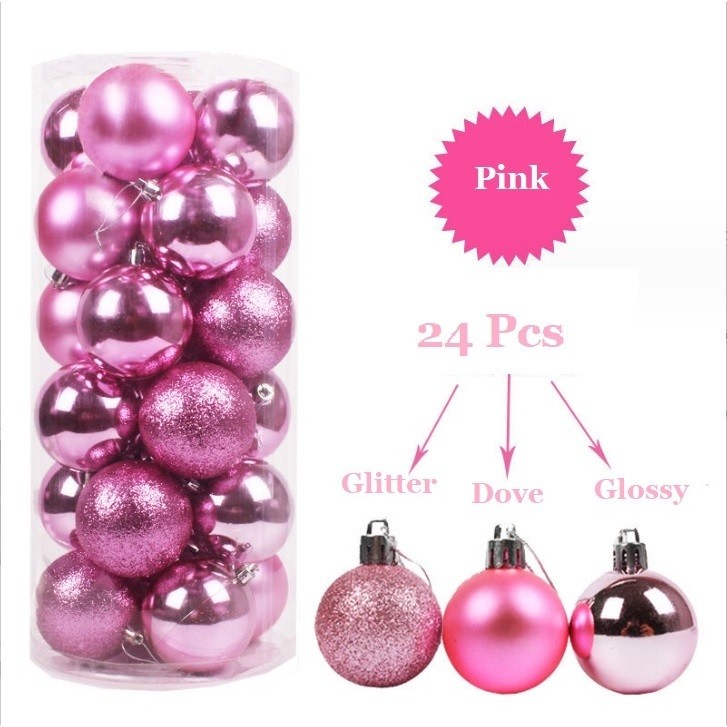 24pcs Bola Natal 4cm 3cm buah paket Hiasan Dekorasi Pohon Natal Rias Murah Cantik Merry Christmas Tree Hampers Garland K