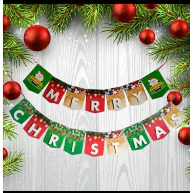 Banner Merry Christmas 1 Set Dekorasi Hiasan Natal Bunting flag Natal