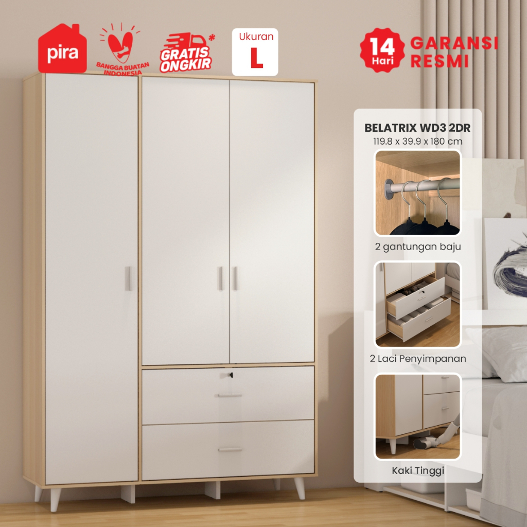 PIRA - BELATRIX WD3 2DR Lemari Pakaian 3 Pintu dengan 2 L / Lemari Baju