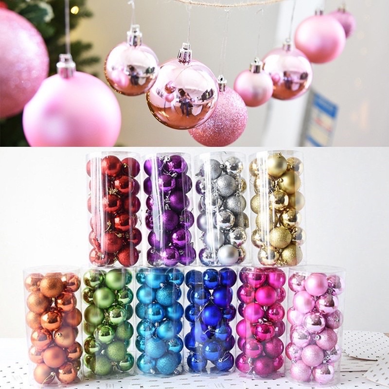 HIASAN DEKORASI BOLA GLITTER POHON NATAL GARLAND GANTUNG CHRISTMAS TREE BALL 24pc 3cm isi banyak premium