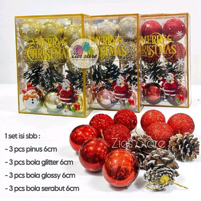 OSZAF23005 SET BOLA PVC 12 Aksesoris Ornamen Natal Christmas Ball Hiasan Pohon Natal