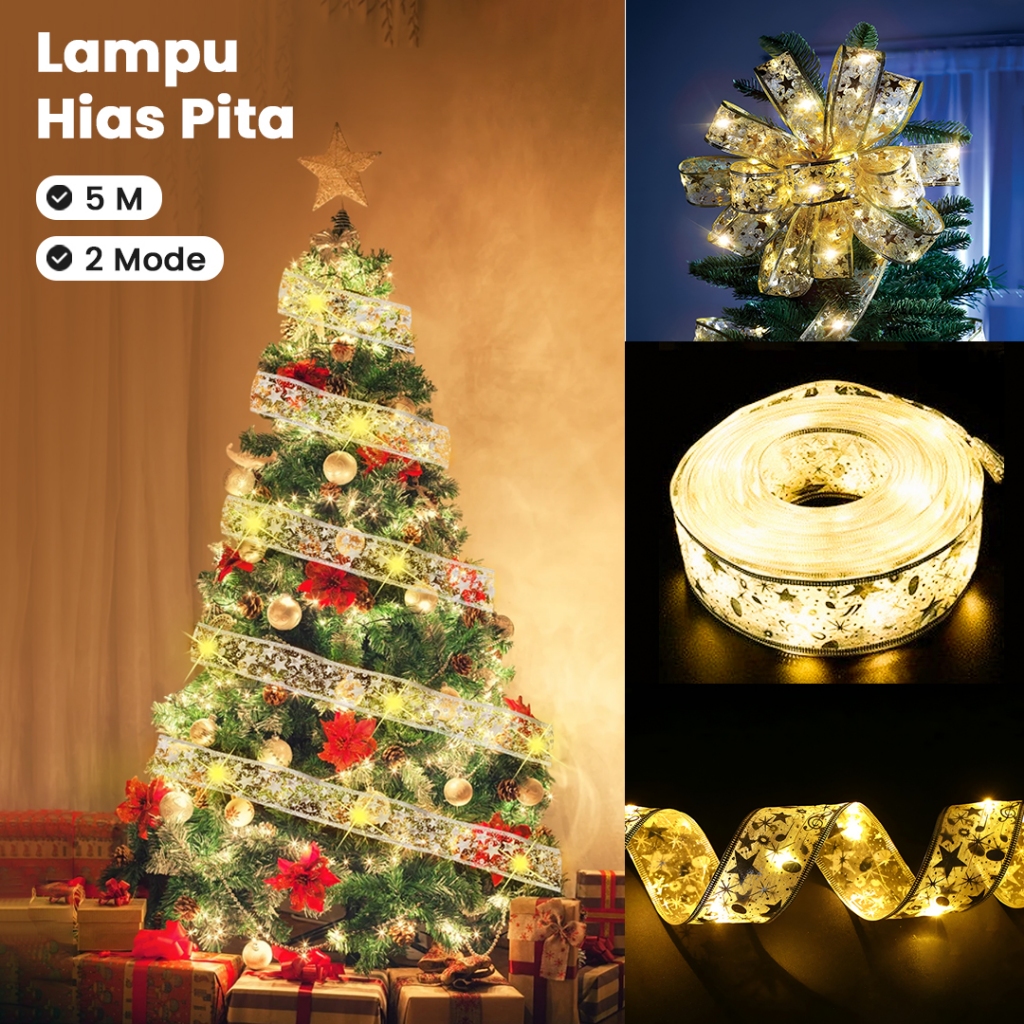 Lampu Hias Pita Bunga Natal String Lights Model 50 LED Warm White Multicolor