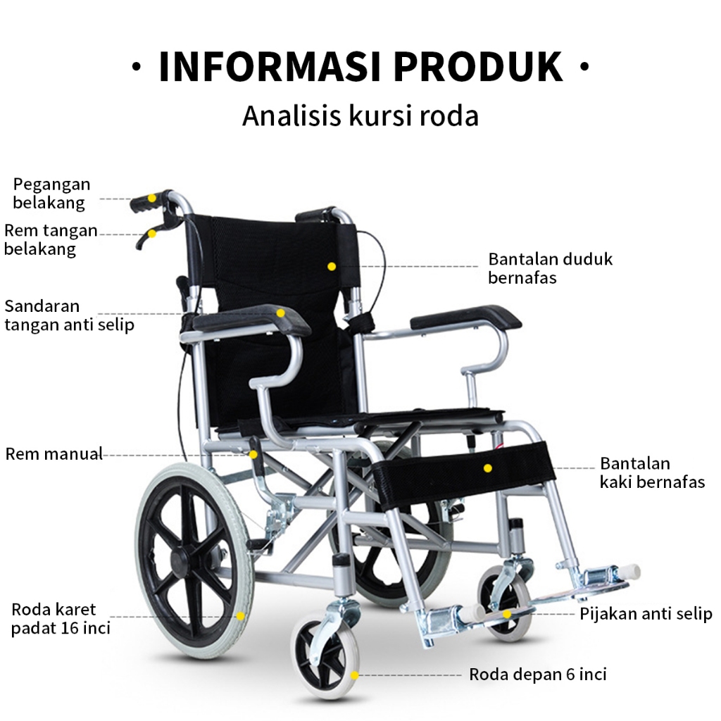 Kursi Roda Traveling 24 inci Kursi Roda Lipat Armrest Ajustable / kursi roda / kursi roda lansia