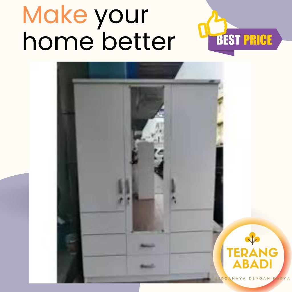 [NEW] Lemari Pakaian 2 Pintu Modern Minimalis PUTIH Termurah / Lemari Pakaian 3 Pintu Modern PUTIH