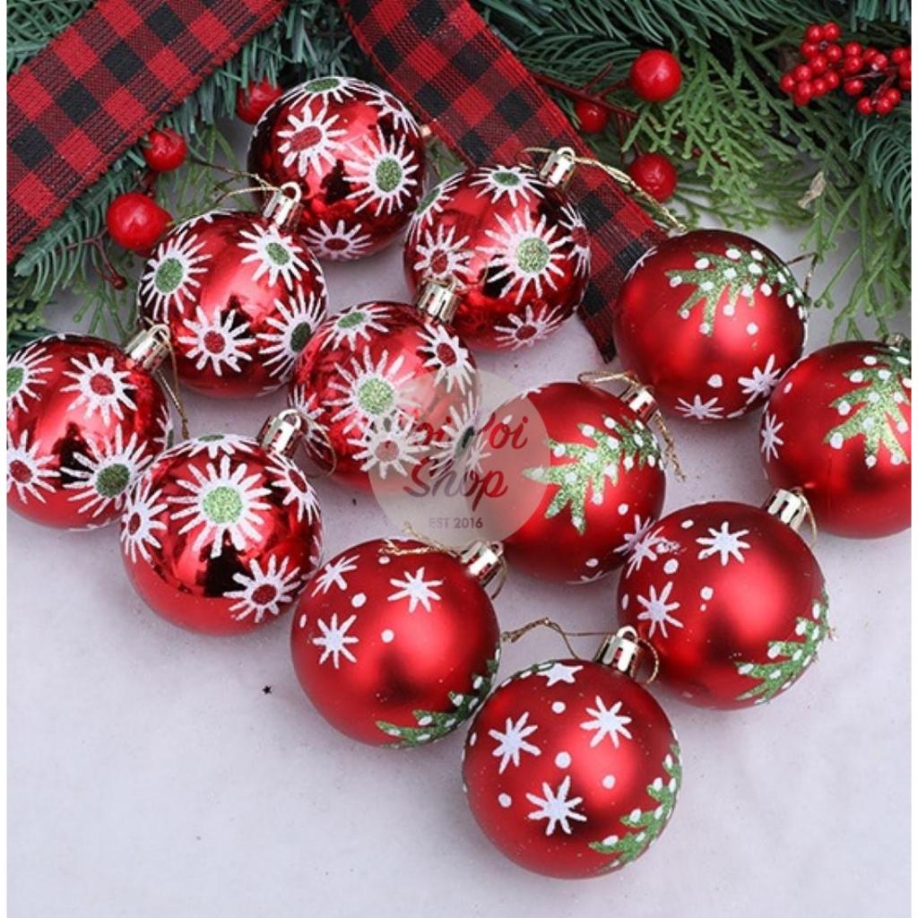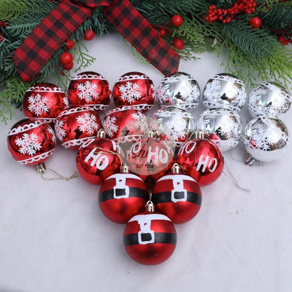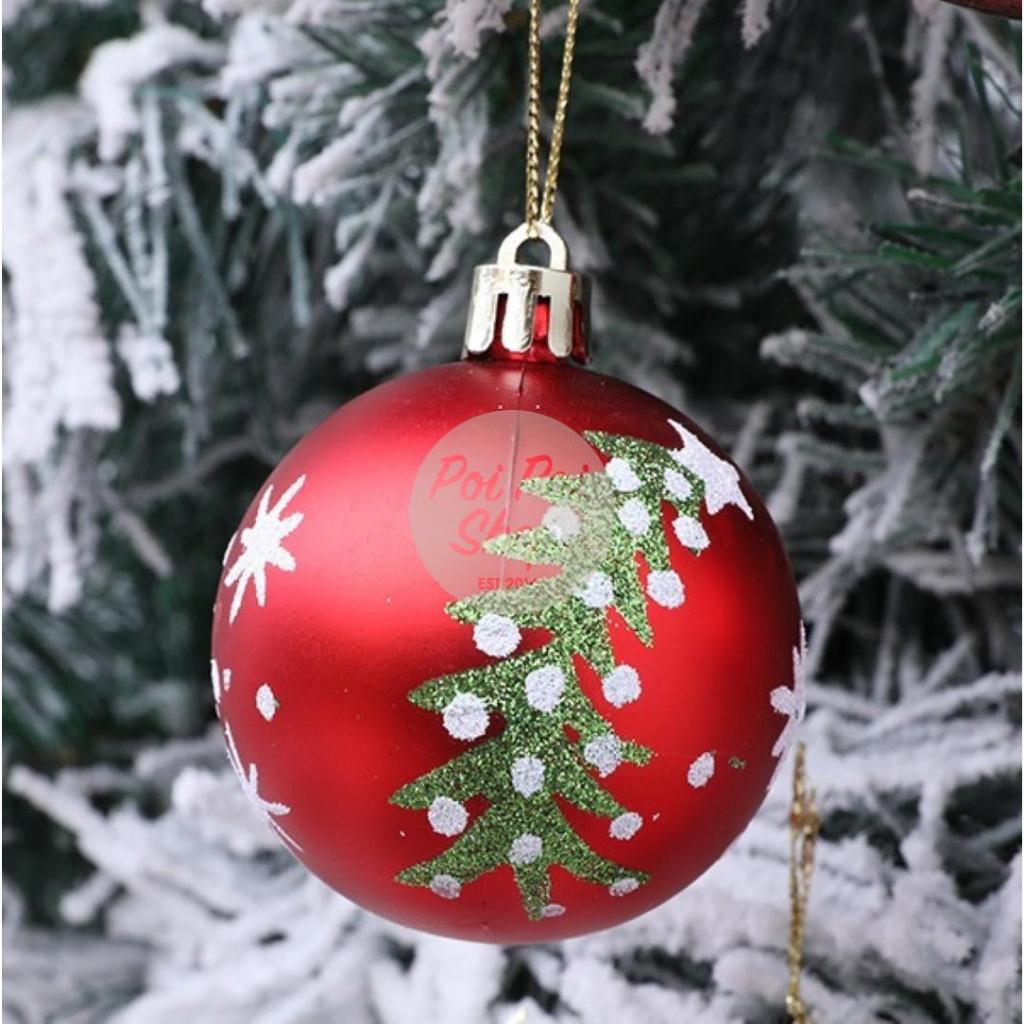 Bola Natal 6cm isi 6 Premium Motif Natal Merah Hiasan Bola Pohon Natal Christmas Ball Besar Gantungan Dekorasi Ornamen D
