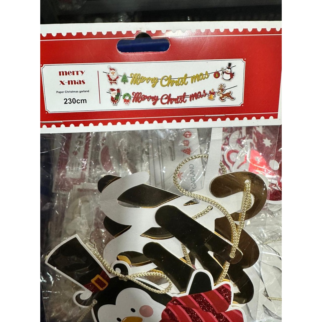 Banner Merry Christmas Tulisan Sambung Merah kuningan mengkilap 2 3M
