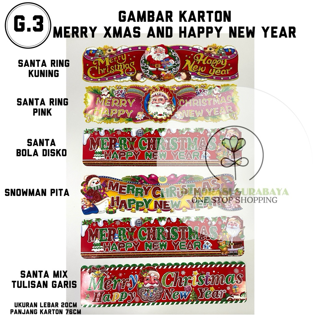 BJ09 Banner Kotak, BJ09 Banner pita, G1 Pohon Mix, G1 Santa Mix, G2 Snowman Ukir, G2SantaTlsanGarisMix, G2 SantaRingBalon, G2 SantaWaveMix, G2 SnowmanCemar4ppita, G3 SantaRingKuning