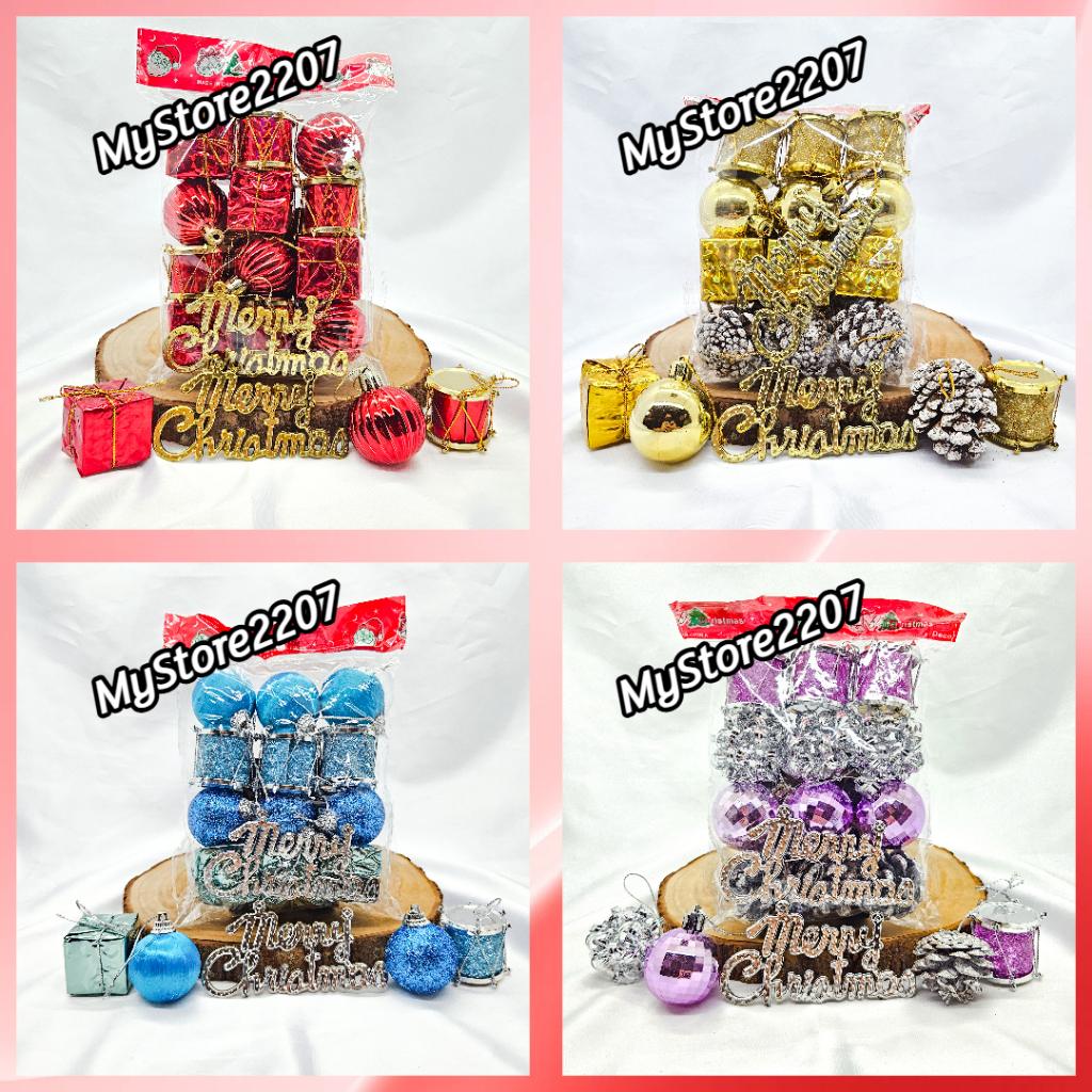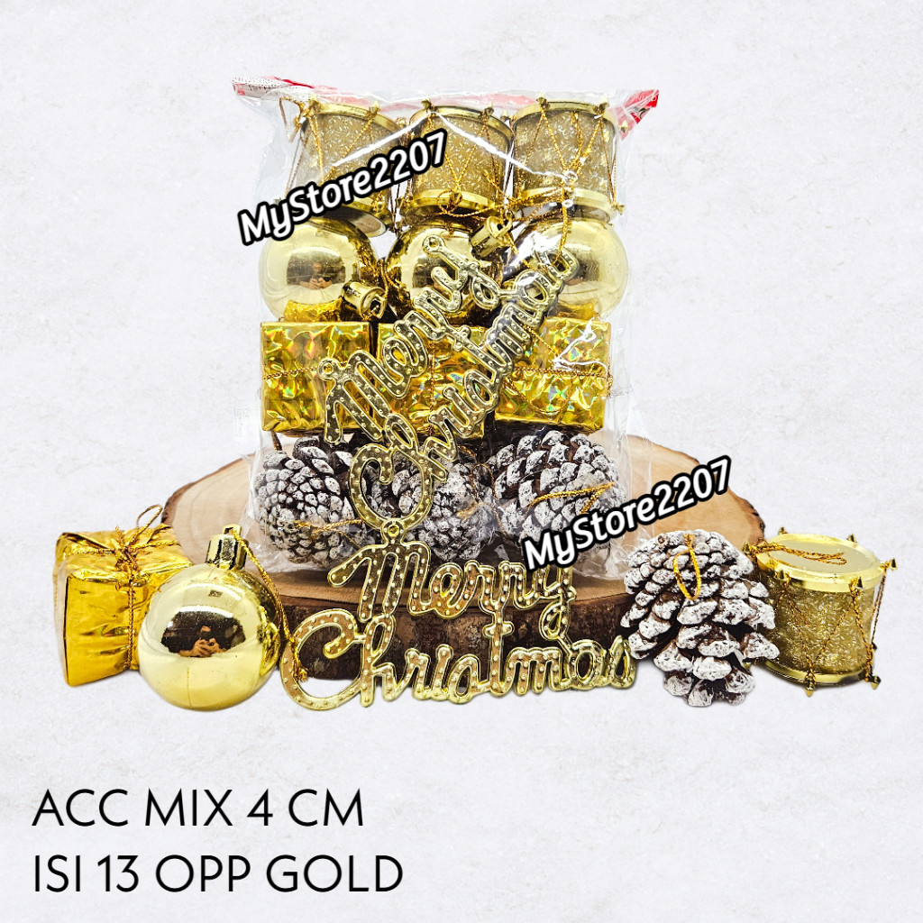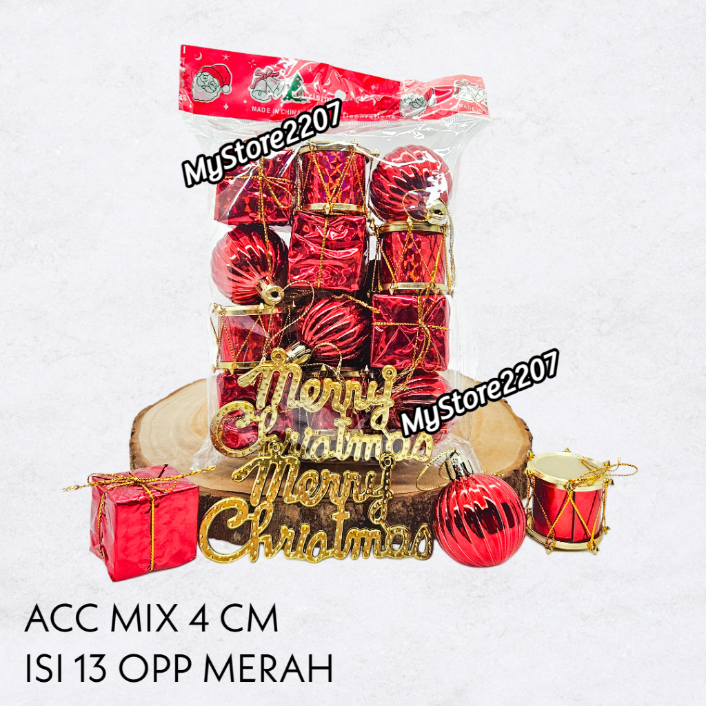 MIX 13 PCS BOLA NATAL 4 CM DRUM NATAL DEKORASI GANTUNGAN POHON NATAL PINUS