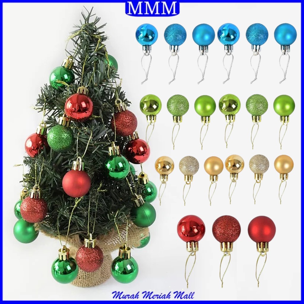 MMM Bola Hias Pohon Natal 12PCS Gantungan Bola Kilap 6PCS Aksesoris Hiasan Pohon Natal Ornamen Dekorasi Musiman
