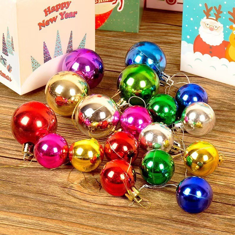 GROSIR 4 CM Bola Natal isi 6 Bola Natal Glossy Bola Salju Gliter Hiasan Pohon Natal Dekorasi Christmas Ball
