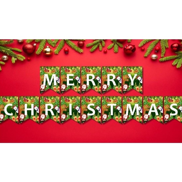 Banner Natal Merry Christmas Warna Cerah Ukuran Pas