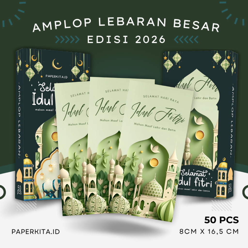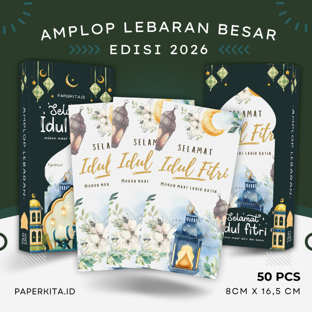 Amplop Lebaran Idul Fitri 2026 Ukuran Besar THR Tanpa Lipat Box isi 50pcs Kwalitas Premium