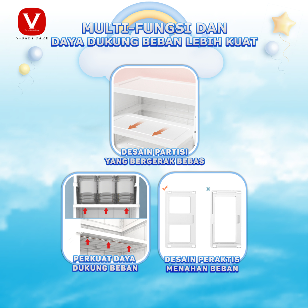 V-BABY CARE - Lemari Pakaian Anak 65CM / Lemari bayi Plastik / Plastic Storage Cabinet Lemari T6